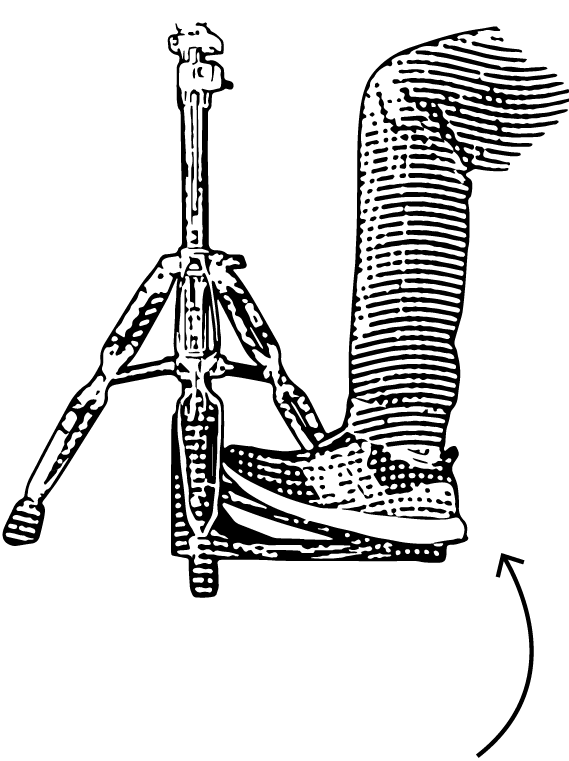 Um einen prägnanten “Chick-Sound” zu erhalten, kannst du “Heel Up” (Ferse oben) spielen. Das Gewicht des Beines ruht dabei auf dem Pedal – ähnlich wie beim Stehen auf Zehenspitzen. Hast Du einmal die richtige Spiel-/Fußposition auf dem HiHat-Pedal gefunden, ist es kein Problem auch einen ganzen Song über mit der “Heel Up” Technik zu spielen.